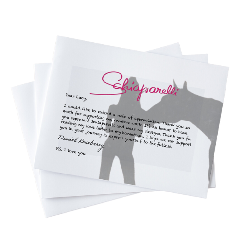 Once we had our collection finished, the next question was: how are we going to sell it? Our task was to create a marketing plan that covers all the bases. Our foundation for the story of the collection is that this is a love letter to Plano and Paris from Daniel Roseberry. Our slogan for the collection is “P.S. I love you”. Generally, P.S. is a common abbreviation used in letters, but it especially worked out for us because it also serves as an abbreviation for Plano by Schiaparelli.